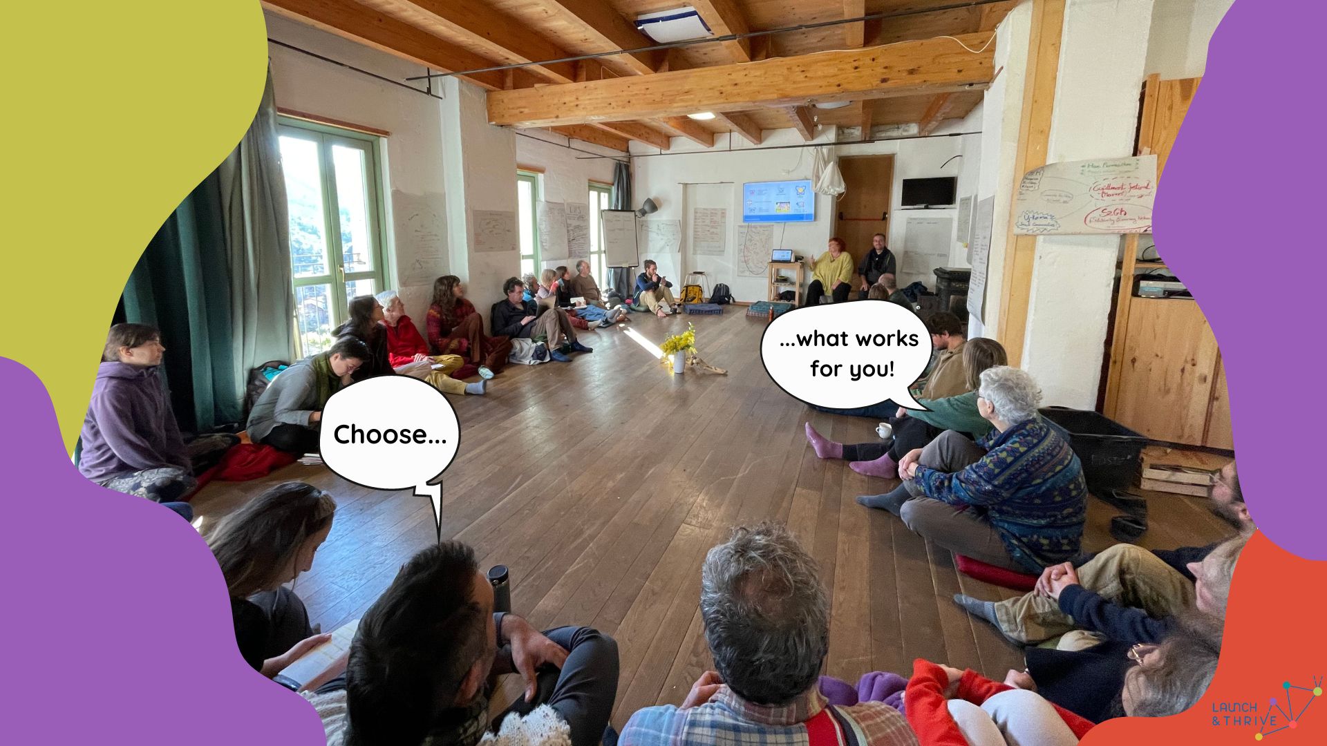 Finally, we encourage to read thoroughly about the concept of Dragon Dreaming, which encourages embracing the unknown and exploring new paradigms and cultures. It emphasizes the importance of deep listening to the Earth, to others, and to oneself. A key aspect highlighted is the occurrence of "Aha-moments," where new insights or connections are made, leading to heightened awareness. These moments are described as infectious and can lead to creative problem-solving when shared within a group. The text suggests various practices to maximize Aha-moments, including connecting with nature, diverse realities, cultures, and dreams, as well as engaging in reflection, meditation, and generative questioning.